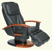 Fotel z funkcją masażu Manhattan z obrotową podstawą (do 60°), ręcznie polerowanymi drewnianymi podłokietnikami, regulowanym oparciem, funkcją masażu łydek i stóp, 4 rodzajami masażu, 2 automatycznymi programami i elektrycznym pilotem.